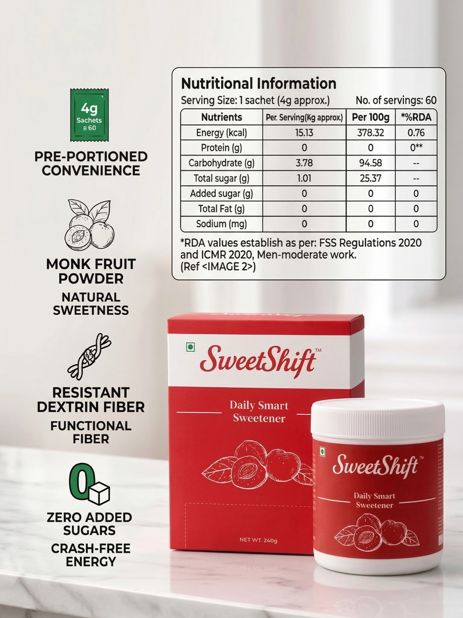 SweetShift Daily Sweetener – 60 sachets – 240 g Powder Box
